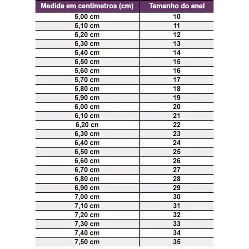 Obs.: Repita o processo 2 vezes para ter certeza do tamanho do seu dedo.