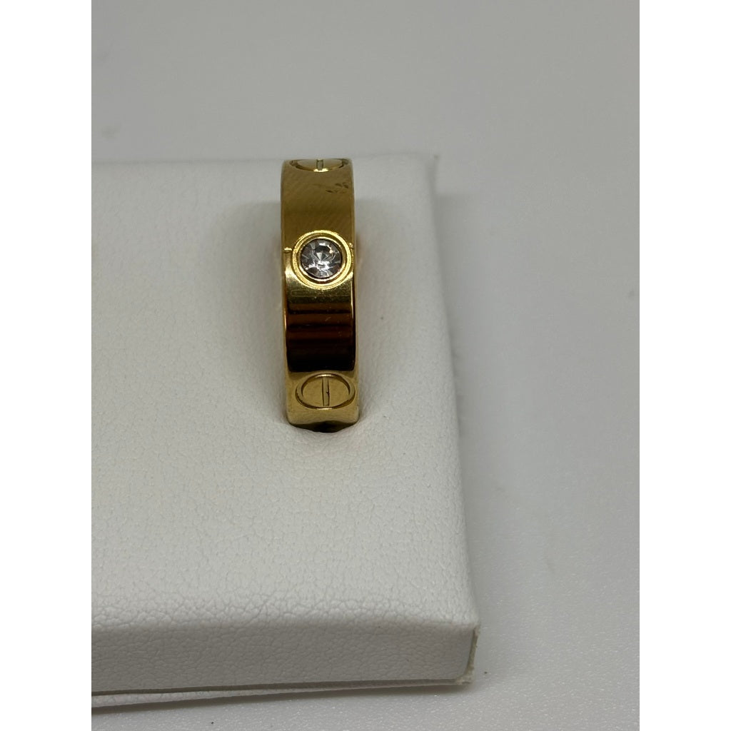 Um toque de brilho que transforma tudo! Este anel em aço inoxidável dourado traz o icônico design Love com acabamento espelhado e uma pedra central cravejada que adiciona sofisticação e charme. Ideal para quem ama joias marcantes, resistentes e cheias de estilo.