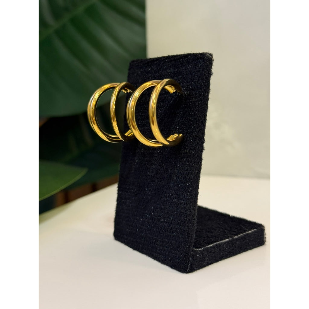 Brinco argola tripla em aço inoxidável 316L - elegância e durabilidade
