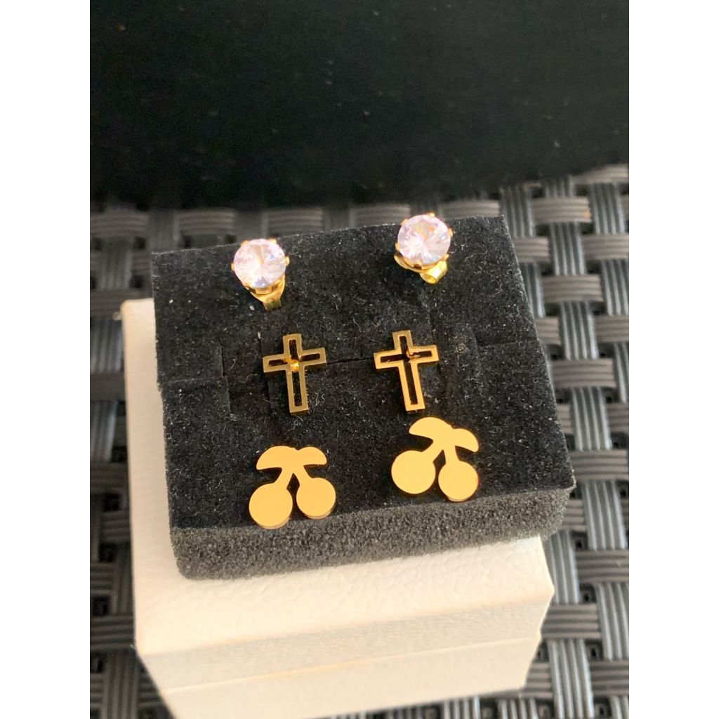 Brinco feminino 3 Pares de Brincos Aço Inoxidável – Cristal, Cereja e Cruz