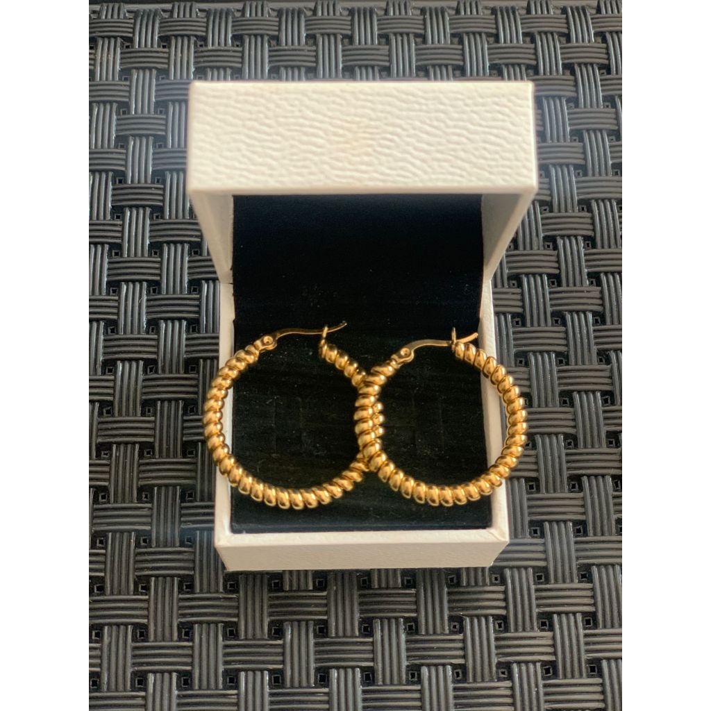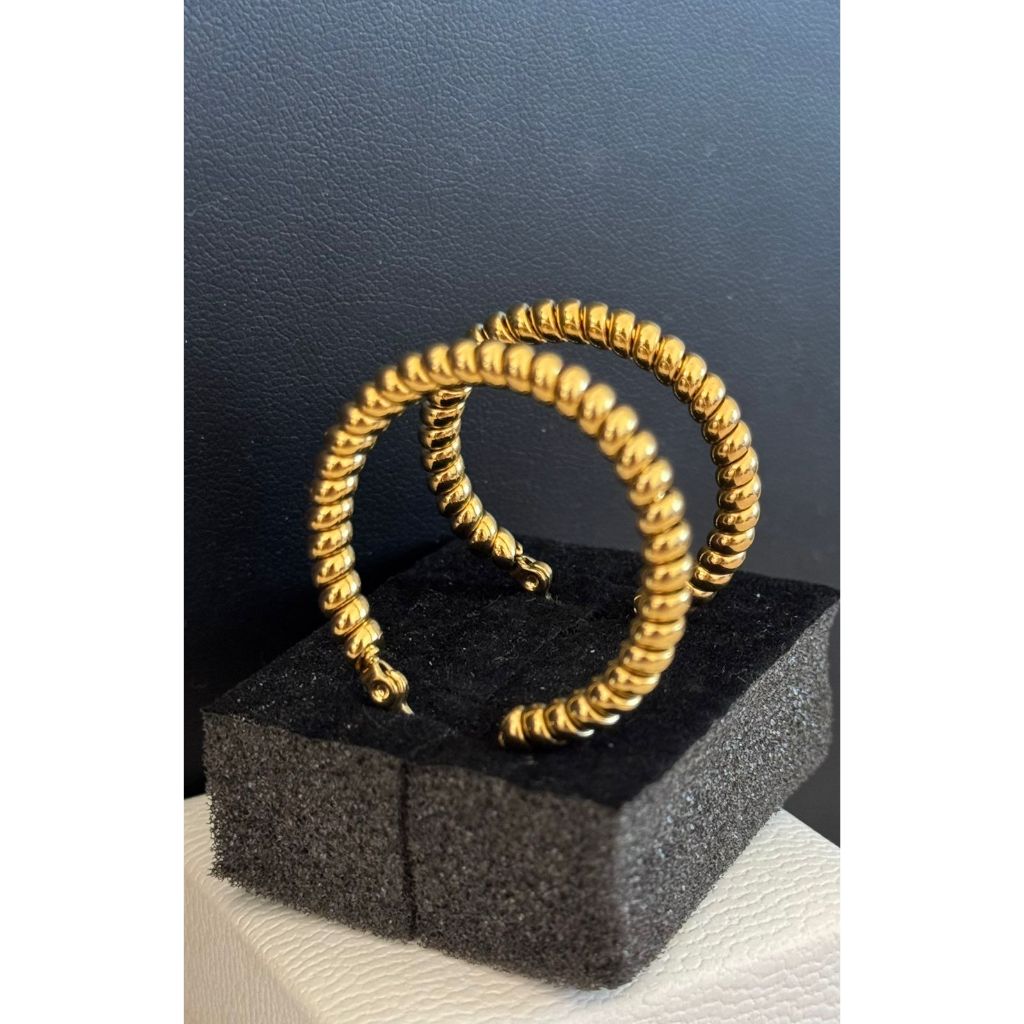 Imponente e elegante, este brinco de argola traz um design torcido que combina textura e brilho em uma peça única. Produzido em aço inoxidável banhado a ouro, ele é ideal para quem busca sofisticação e durabilidade no dia a dia.