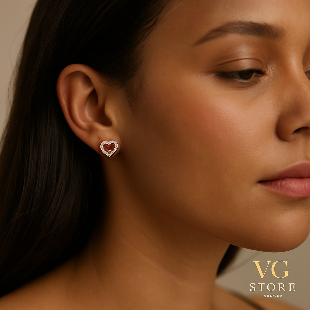 O brinco feminino Maya apresenta um design delicado em formato de coração, com bordas finamente trabalhadas em estilo milgrain, conferindo textura e sofisticação. O interior vazado destaca o contorno metálico, resultando em uma peça leve e elegante, perfeita para valorizar qualquer look com um toque de requinte discreto.