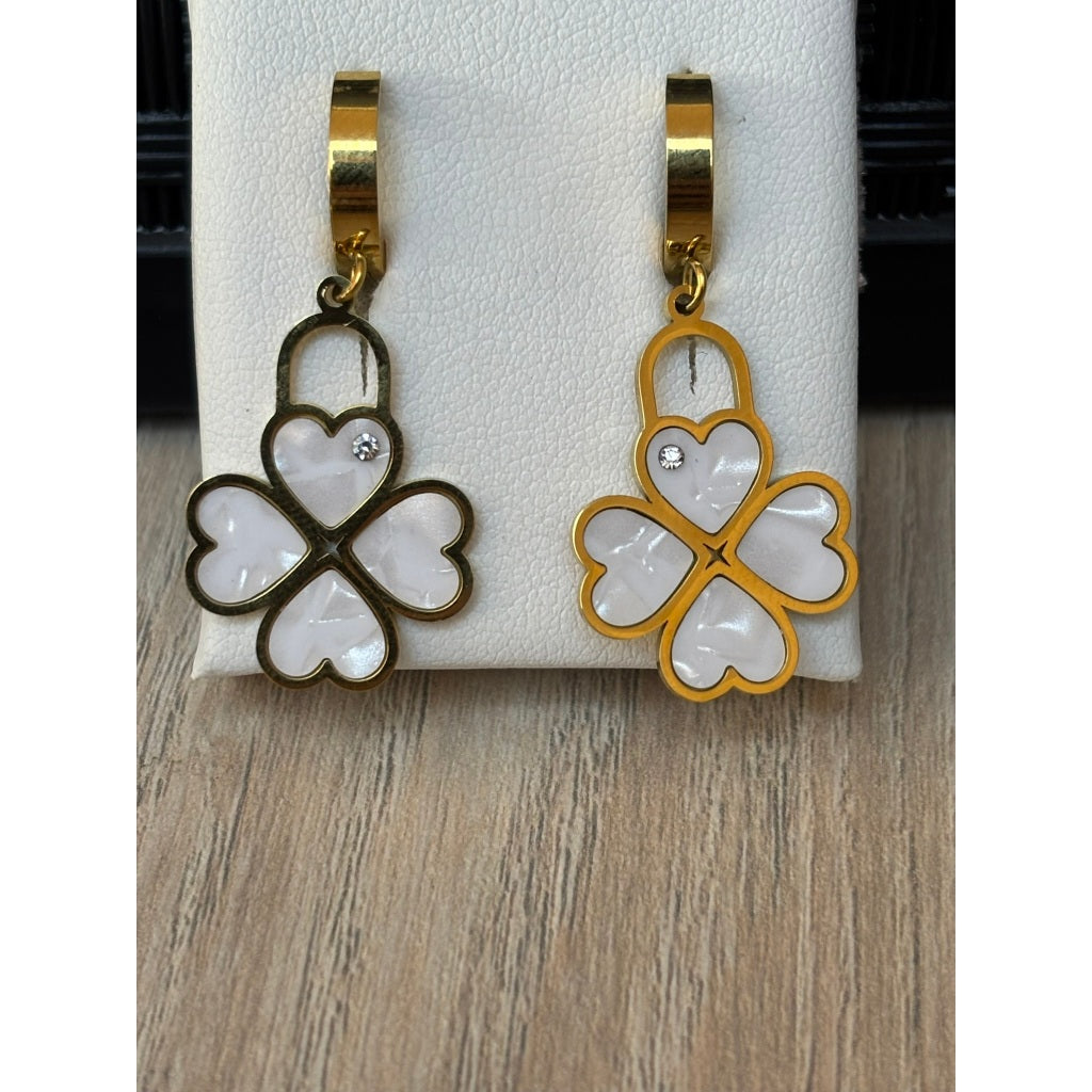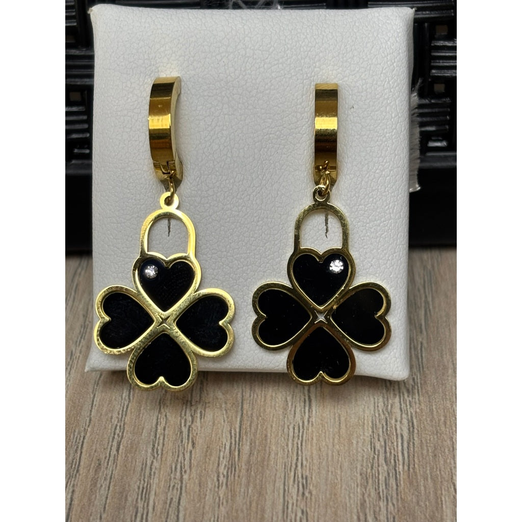 Brinco Feminino Trevo Corações - Aço inoxidável