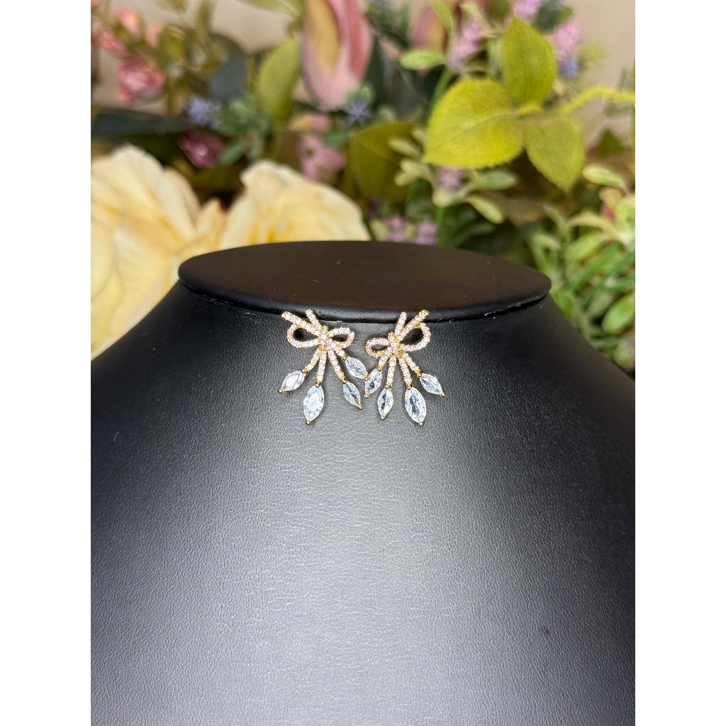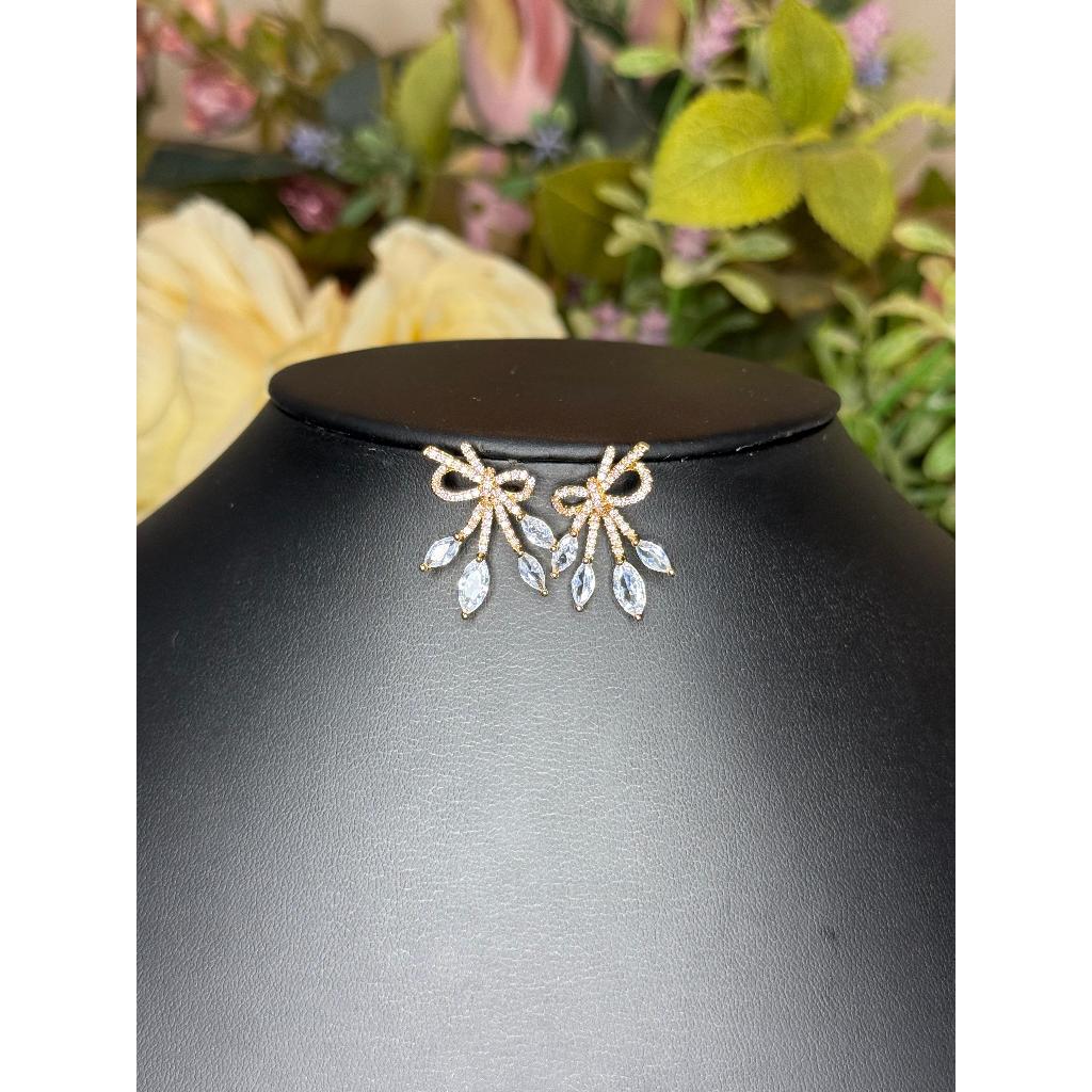 Brinco laço com ponta de cristais em zircônia coleção premium 2025