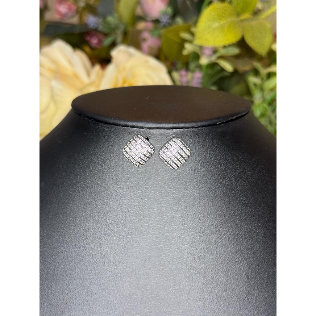 Brinco com design quadrado sofisticado, delicadamente cravejado com zircônias que conferem brilho e elegância discretos.