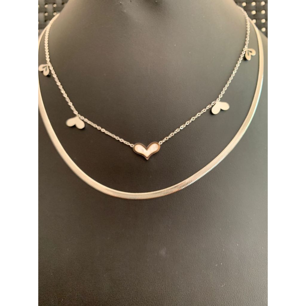 Romântico e moderno na medida certa, este colar duplo é a definição de delicadeza com presença. A peça combina uma corrente lisa tipo veneziana flat, com outra corrente fina adornada por pingentes de corações – sendo o destaque um coração vazado central.