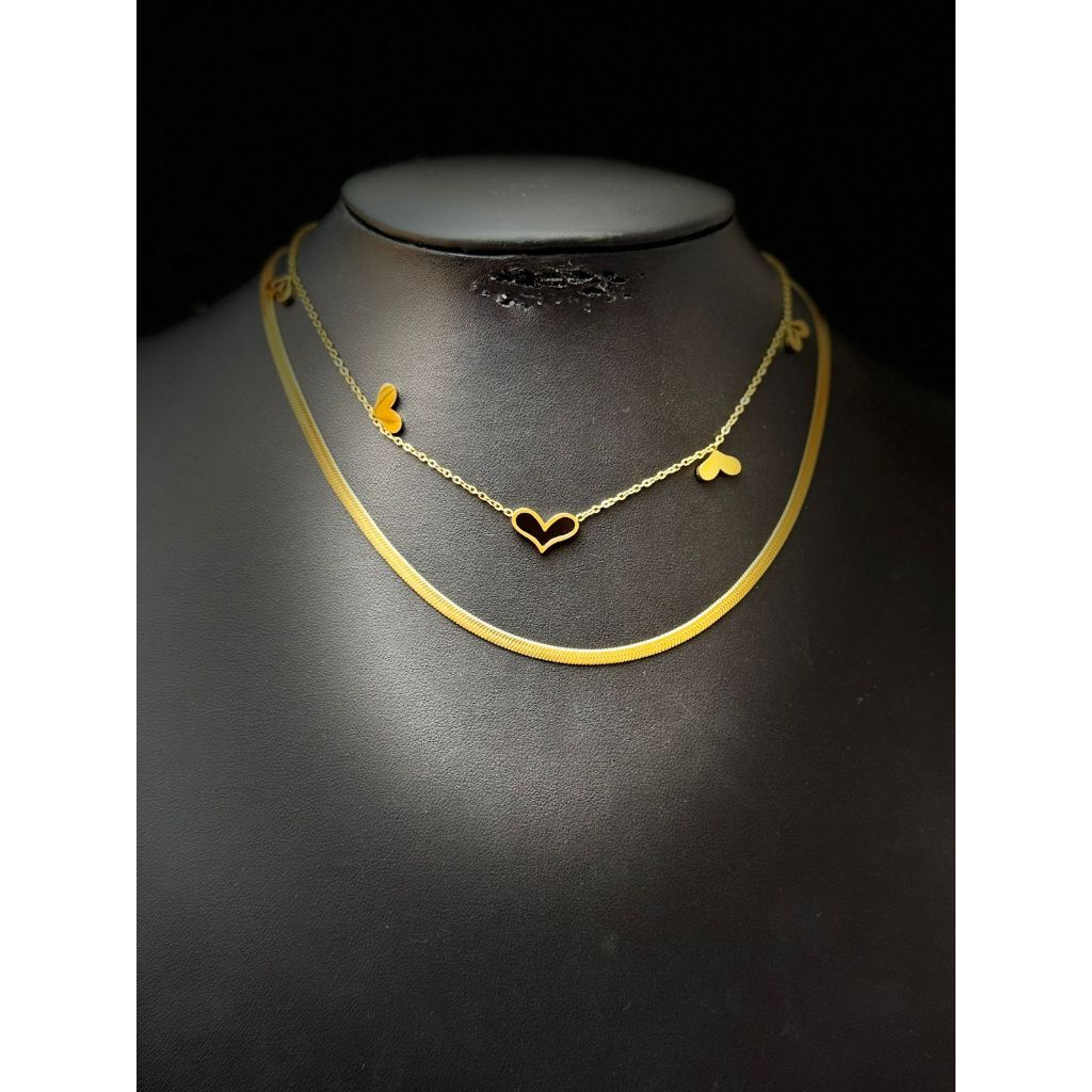 Colar Duplo Corações Vazados – Aço Inoxidável
