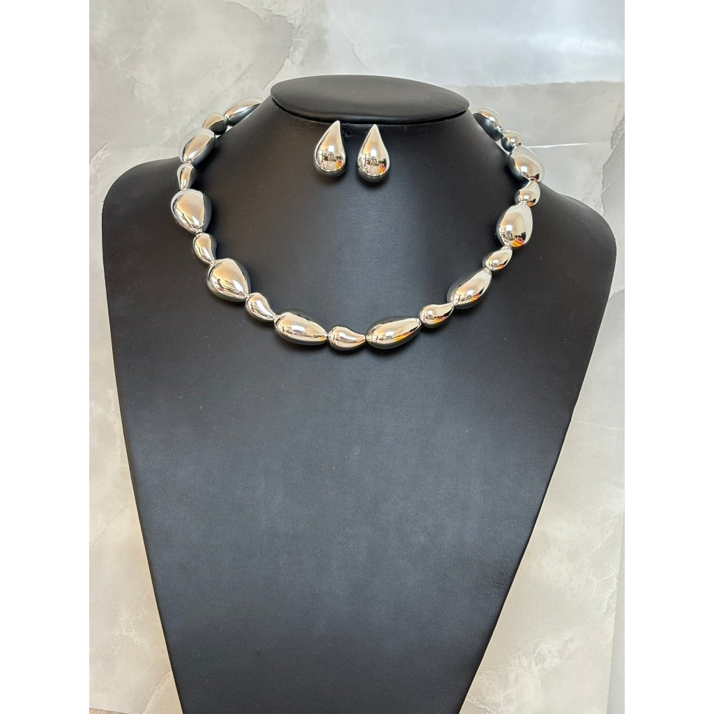 Colar e Brincos feminino Gota Metalizado – Luxo e Sofisticação