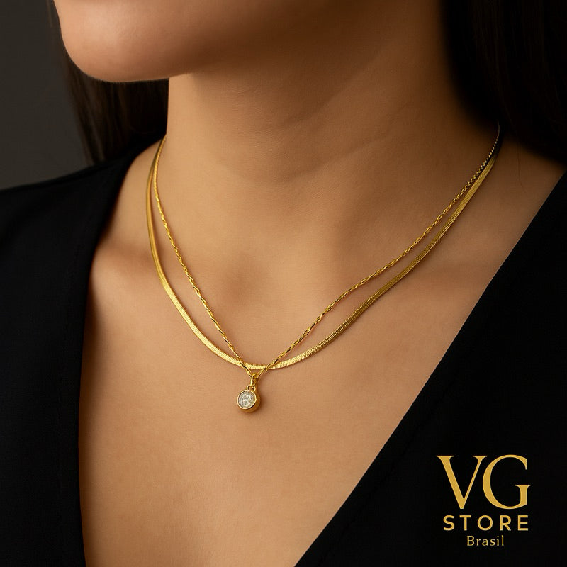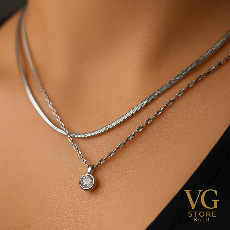 Colar Feminino Duplo com Ponto de Luz – Aço Inoxidável