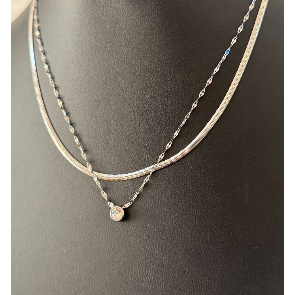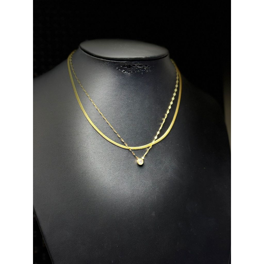 Sofisticação em cada detalhe! Este colar duplo combina uma corrente flat lisa com uma delicada corrente com pingente de ponto de luz, trazendo brilho sutil e um toque de elegância atemporal. Perfeito para quem ama acessórios minimalistas com acabamento refinado.