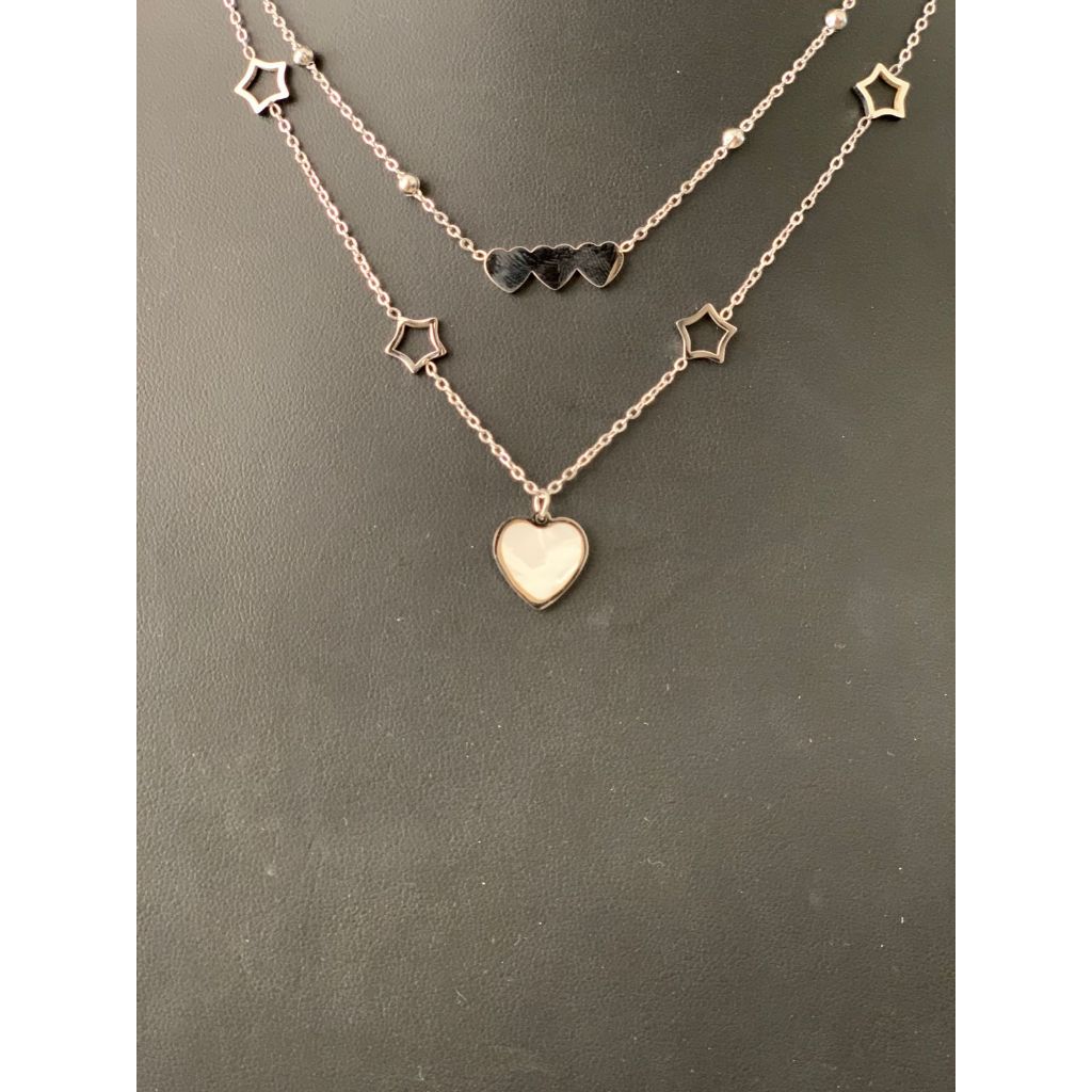 Colar Feminino Duplo Corações e Estrelas – Aço Inoxidável