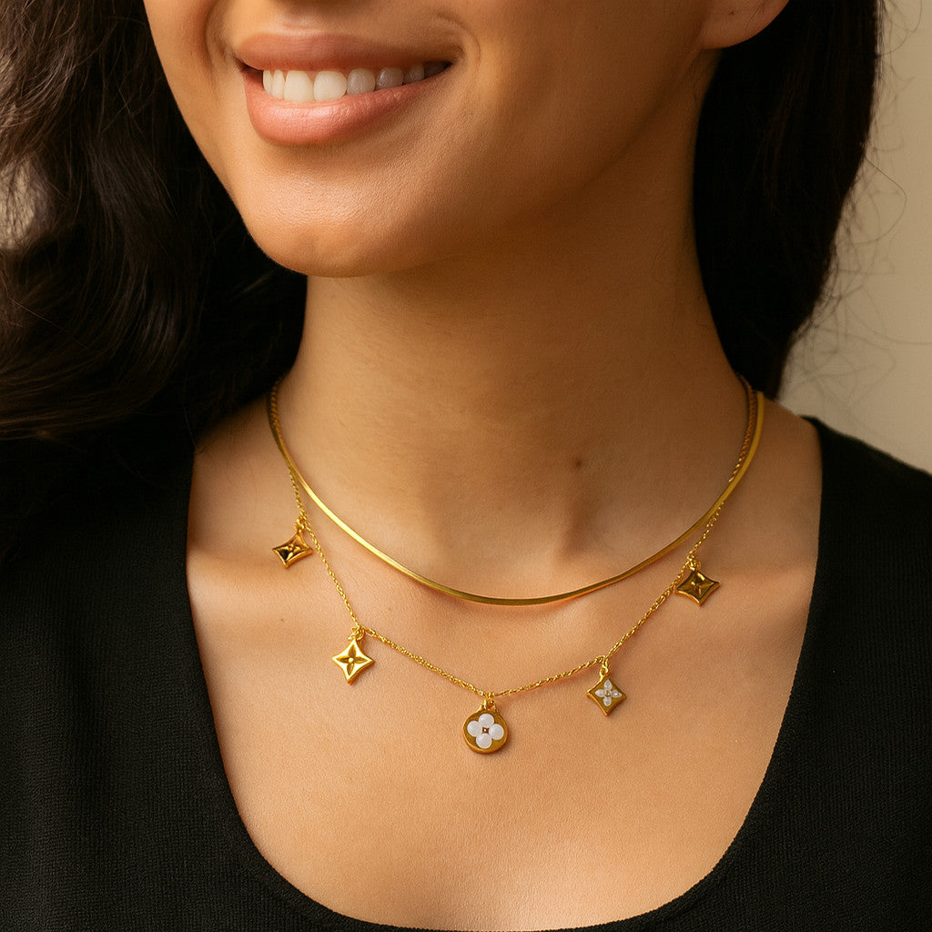 Este colar duplo é a escolha perfeita para quem ama acessórios delicados com toque de luxo.