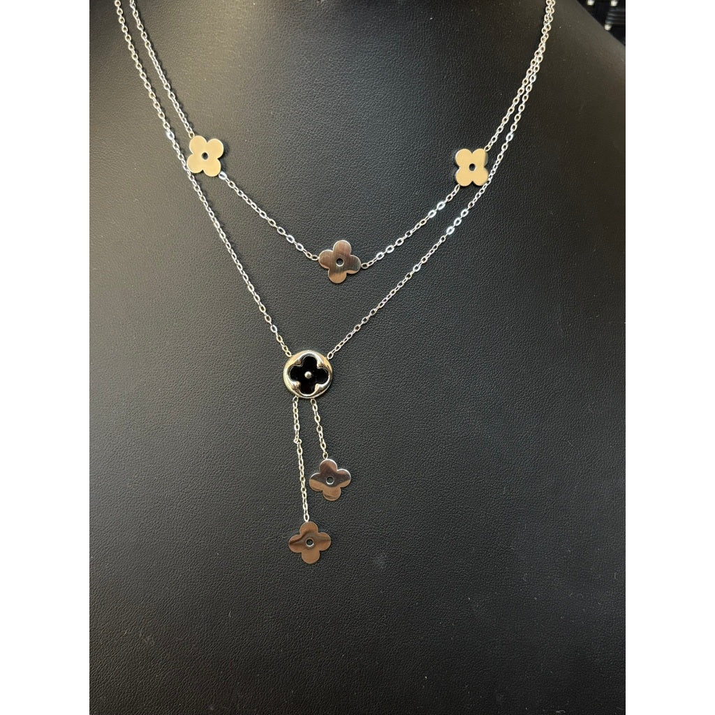 Colar feminino Duplo Floral em Aço Inoxidável – Estilo e Delicadeza