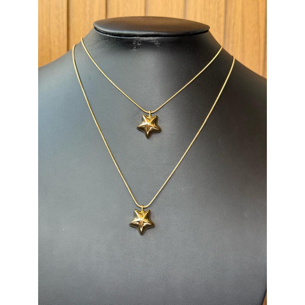 O pingente em formato de estrela traz um toque contemporâneo, ideal para quem busca uma peça delicada, mas com presença marcante. Seu design minimalista confere um ar moderno e sofisticado, elevando qualquer look.