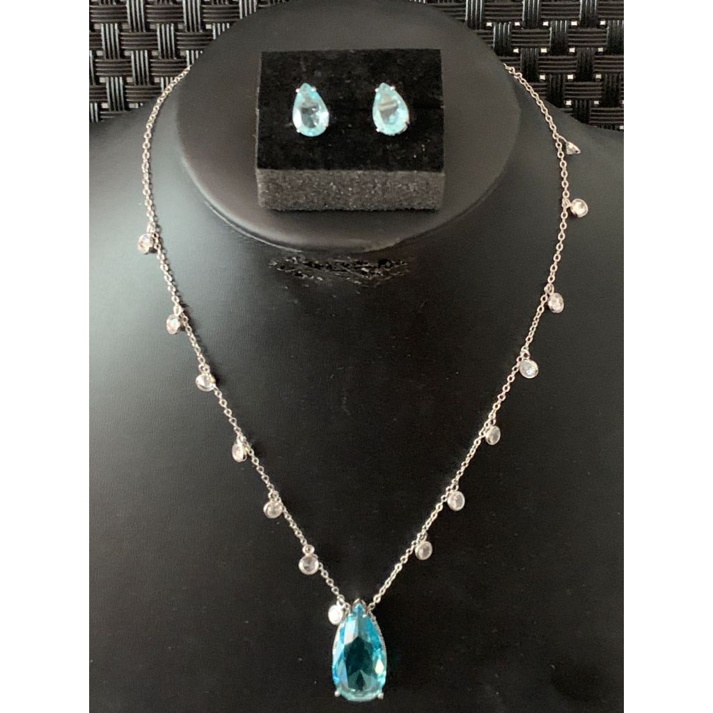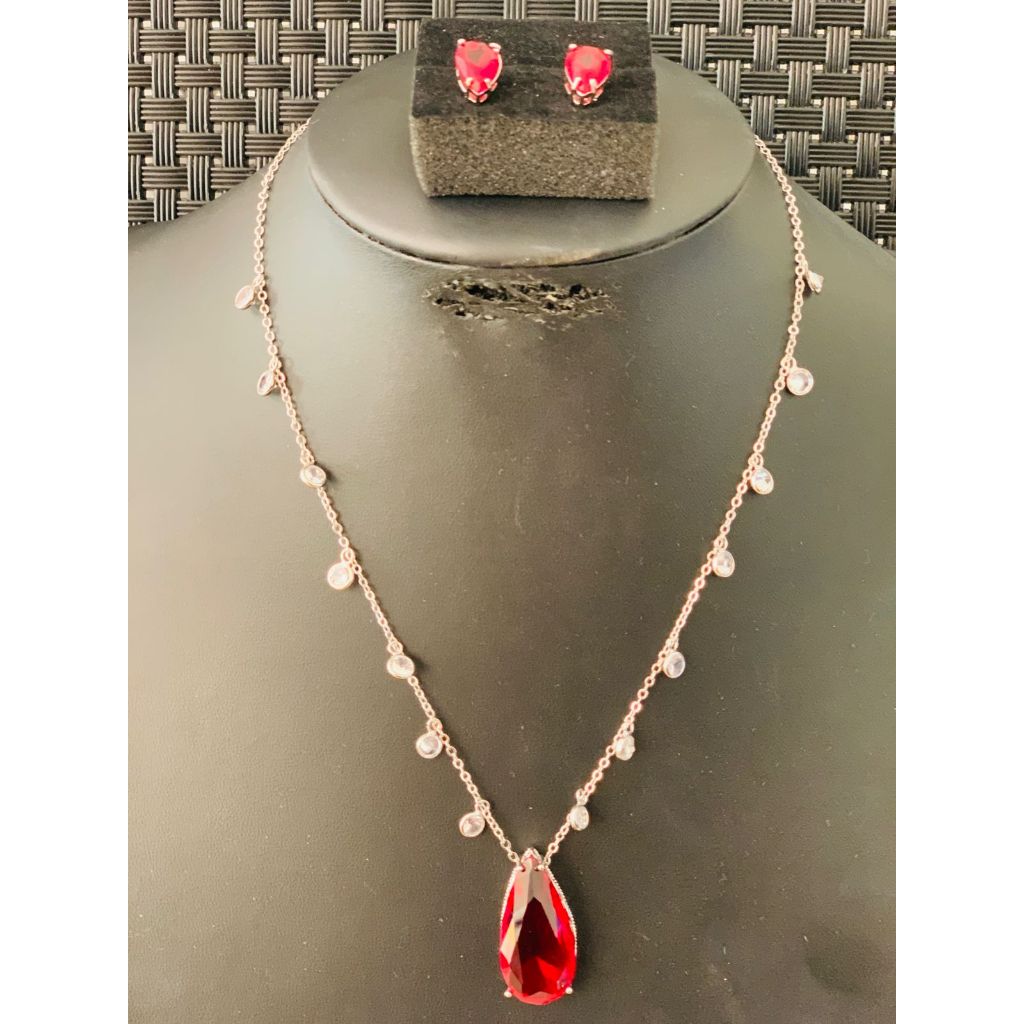 Um conjunto deslumbrante e sofisticado para realçar sua beleza com brilho e delicadeza. O colar apresenta uma corrente fina com delicadas pedrinhas cravejadas ao longo do comprimento e um pingente central em formato de gota, com pedras lapidadas que reflete a luz com um brilho encantador. Acompanha brincos em formato de gota, combinando perfeitamente com o colar, trazendo harmonia e elegância ao visual.