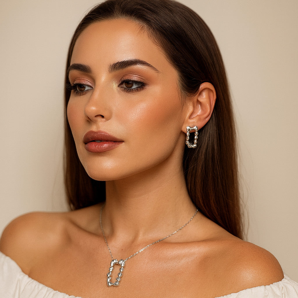Transforme qualquer look com o Conjunto de Colar e Brincos Texturizados, uma peça exclusiva que combina elegância, luxo e um design moderno. Se você busca um acessório sofisticado, versátil e de alta qualidade, esta é a escolha perfeita para realçar sua beleza com muito estilo!