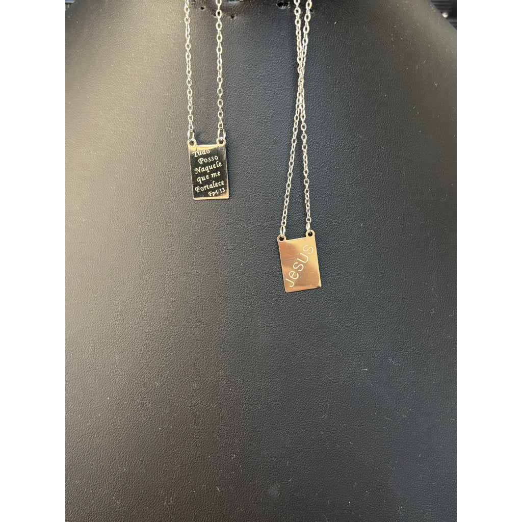 Colar Jesus & Força – Tudo Posso Naquele Que Me Fortalece - aço inoxidável