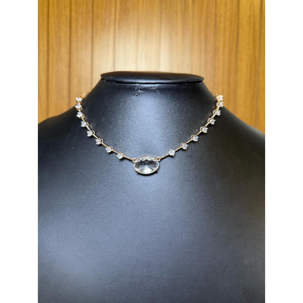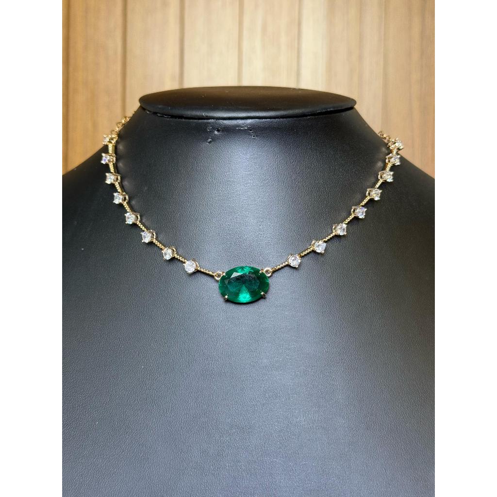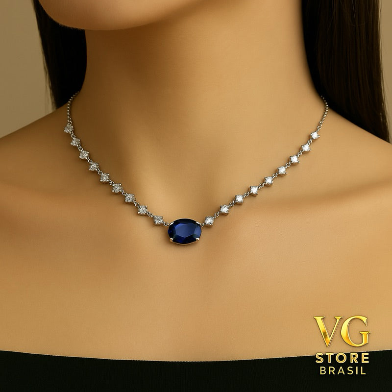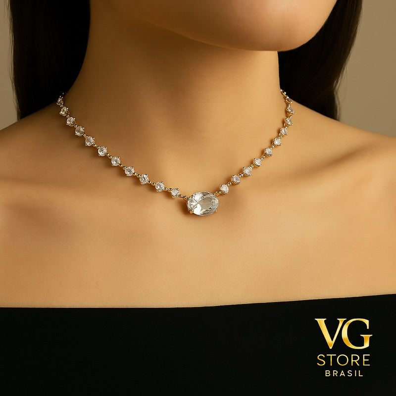 Surpreenda-se com o esplendor deste colar luxuoso, cuidadosamente elaborado para destacar sua beleza e elevar qualquer produção. Com pedras brilhantes finamente lapidadas e um design que mistura o clássico com o contemporâneo, esta peça é a escolha perfeita para quem busca sofisticação em cada detalhe.