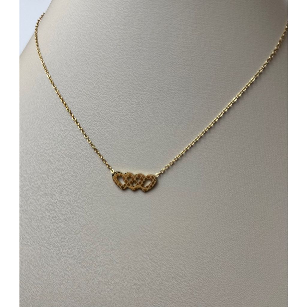 Delicado e cheio de significado, este colar em aço inoxidável dourado traz três corações entrelaçados com textura vazada, representando amor, união e conexão. Ideal para usar no dia a dia ou em produções românticas e elegantes.