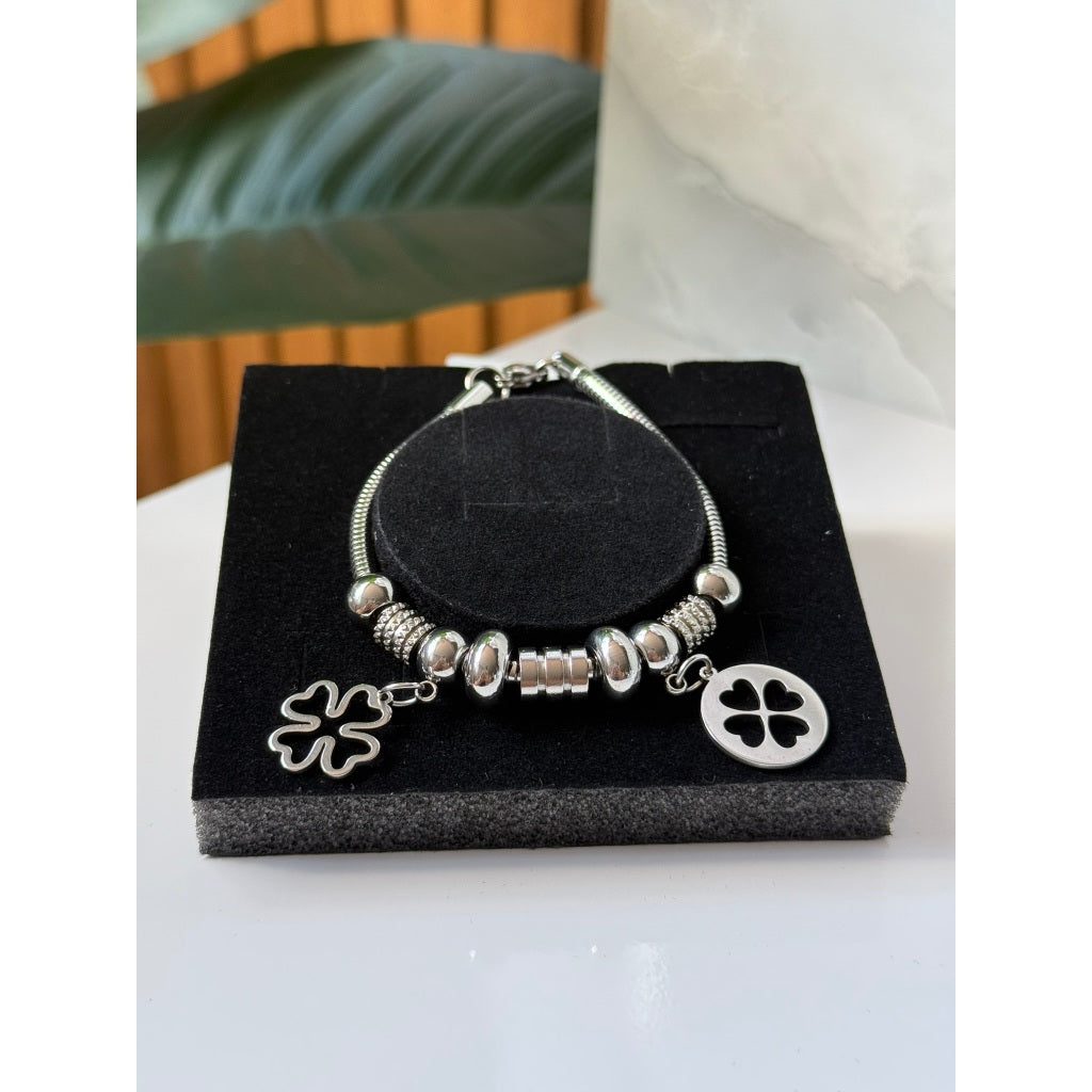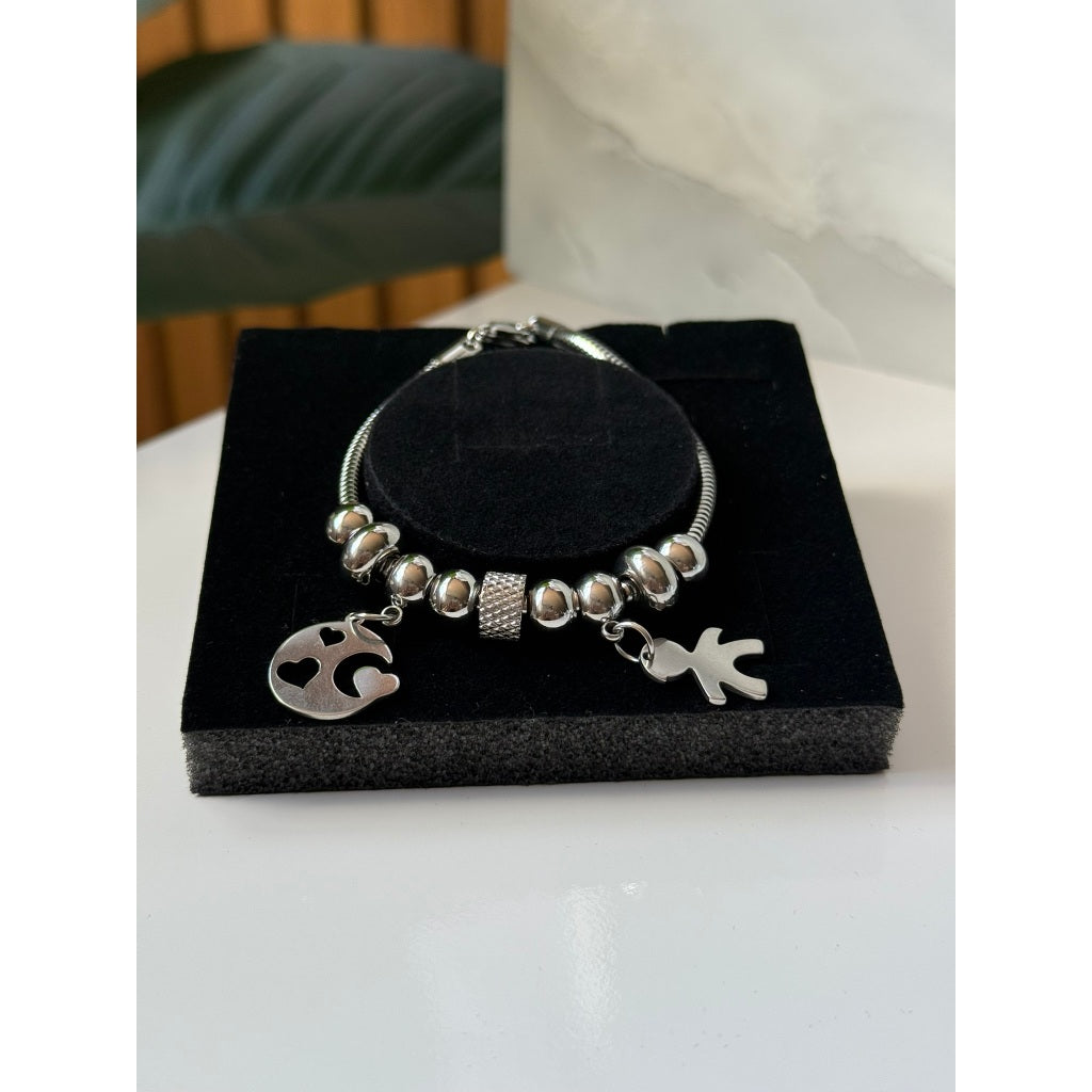 Expresse sua personalidade e energia com a Pulseira Charm em Aço Inoxidável – um acessório que une beleza, proteção e sofisticação.